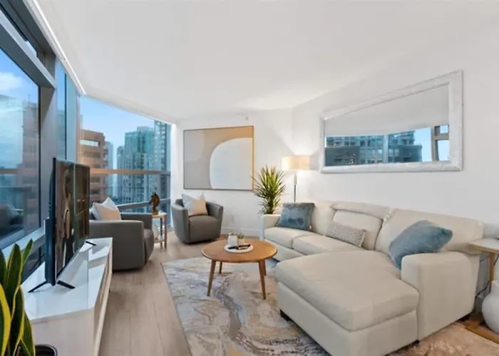 The Executive Downtown Suite With Great City Views is an exceptional retreat nestled in the heart of Downtown Vancouver's vibrant shopping district. This prime location positions guests just steps away from an eclectic mix of luxury boutiques and renowned department stores within the bustling CF Pacific Centre mall, making it an ideal haven for avid shoppers and urban explorers alike.